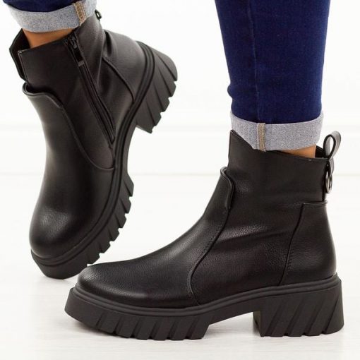 Czarne botki damskieto ponadczasowe i wygodne obuwie na chłodną jesień oraz zimę, które doskonale sprawdzi się w codziennym użytkowaniu. Cholewka wykonana została z wysokiej jakości materiału skóropodobnego, co nadaje butom elegancki wygląd i zapewnia trwałość. Praktyczne zapięcie na suwak ułatwia szybkie zakładanie i zdejmowanie, a klasyczny okrągły nosek podkreśla uniwersalny charakter obuwia. Wnętrze butów zostało wykończone […]