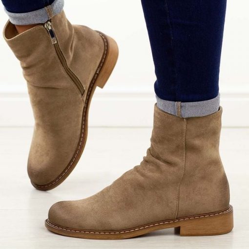 Beżowe płaskie botki damskieto komfortowe i stylowe obuwie stworzone na chłodną jesień oraz zimę. Wykonane z wysokiej jakości materiału zamszopodobnego, wyróżniają się eleganckim wyglądem i ponadczasowym fasonem. Cholewka o modnym, marszczonym kroju nadaje butom charakteru i subtelnej lekkości. Zapinane na suwak, gwarantują wygodę zakładania i zdejmowania, a okrągły nosek zapewnia swobodę oraz komfort noszenia. Wnętrze botków […]