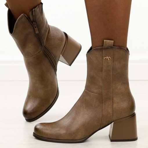 Brązowe botki damskie na obcasie M.Daszyński Sa269-2