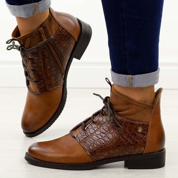 Camelowe płaskie botki damskie Jezzi Asa62-128