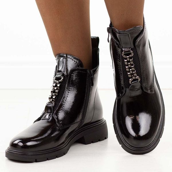 Czarne lakierowane botki damskie Jezzi 2501-8