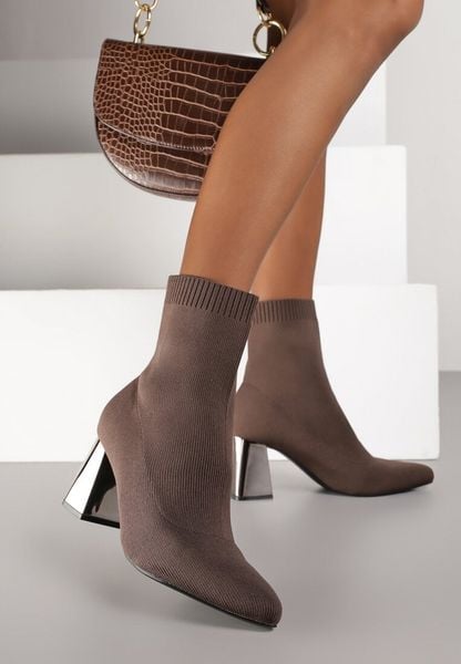 Brązowe Skarpetkowe Botki Vices na Metalicznym Słupkowym Obcasie Widvira