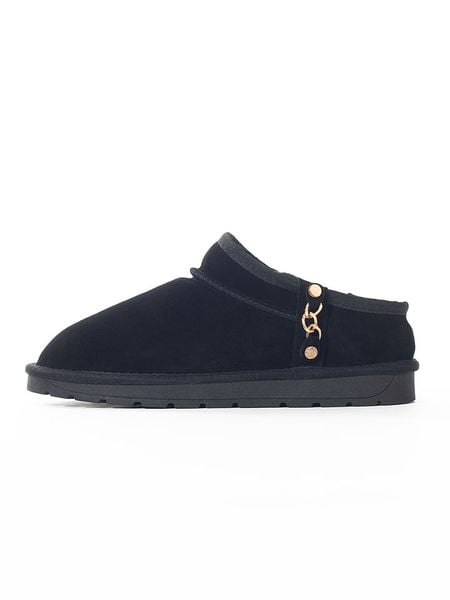 – skóra welurowa- zapięcie: bez- noski: okrągłe- wyściółka: ogrzewająca skóra owcza i materiał tekstylny- detale: dekoracyjny łańcuszek- skórzana wkładka: tak- podeszwa: antypoślizgowa