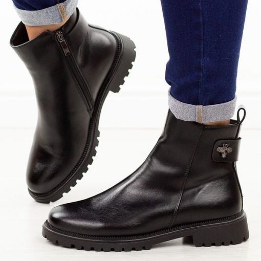 Czarne botki damskie na traperzeto połączenie wygody, nowoczesnego designu i solidnego wykonania. Wykonane z wysokiej jakości materiału skóropodobnego, gwarantują trwałość i odporność na codzienne użytkowanie. Cholewka ozdobiona metalicznym akcentem w kształcie owada nadaje butom wyjątkowego, modnego charakteru. Botki są zapinane na suwak, co ułatwia zakładanie i zdejmowanie. Okrągły nosek zapewnia komfort podczas noszenia, a wnętrze ocieplone […]