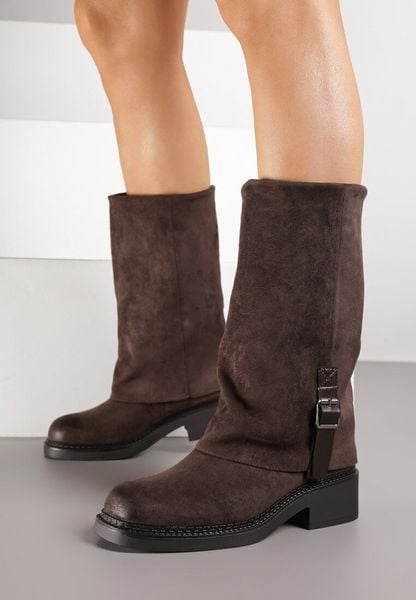 Brązowe Botki z Wywiniętą Cholewką i Paskiem z Klamerką Lunarise