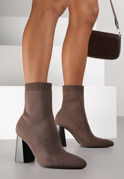Brązowe Botki Vices na Słupku o Geometrycznym Kształcie i Elastyczną Cholewką Falessea