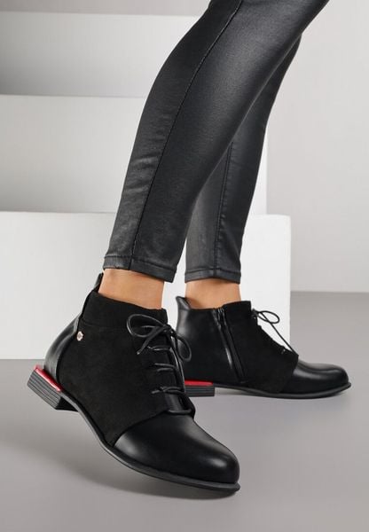 Czarne Botki Vices ze Sznurowaną Cholewką Ozvila