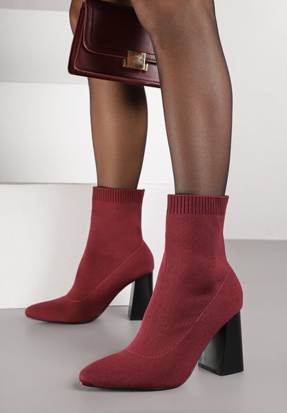 Bordowe Botki Vices na Słupku o Geometrycznym Kształcie i Elastyczną Cholewką Falessea