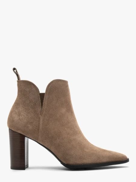 Piaskowe botki na słupku z wycięciem przy kostce