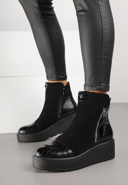 Czarne Botki Vices na Platformie z Tłoczeniem Krokodyla Falarena