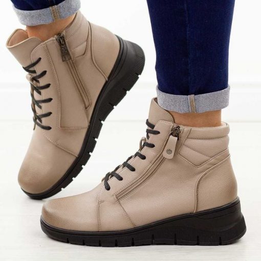 Beżowe skórzane botki damskie na koturnie Vinceza 39963