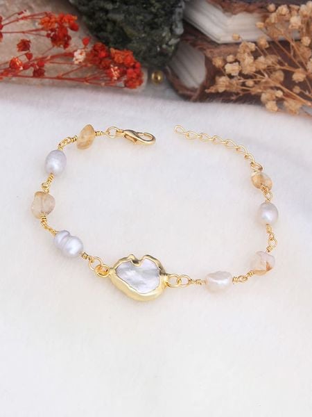 Pierres delicates Pozłacana bransoletka z masą perłową i cytrynami rozmiar: onesize