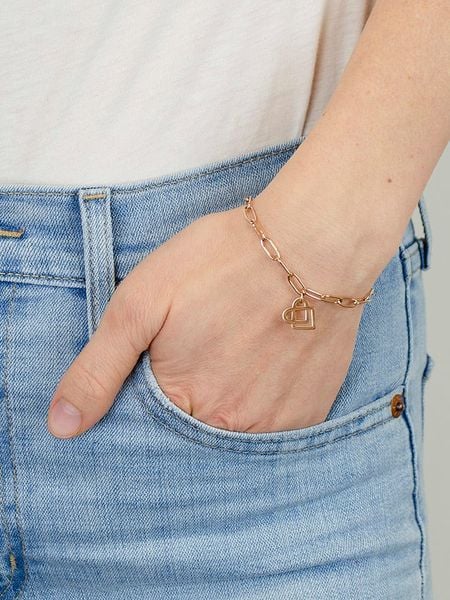 – materiał: stal szlachetna- powłoka: w kolorze różowego złota- typ łańcuszka: płaski ankier- zapięcie: karabińczyk- kształt zawieszki: serceWskazówka: Zdjęcie produktu w powiększeniu.