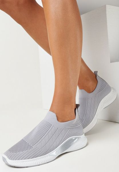 Szare Wsuwane Buty Sportowe z Elastyczną Cholewką i Ozdobną Wstawką na Podeszwie Moonsara