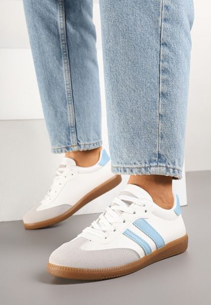 Biało-Niebieskie Sneakersy w Typie Tenisówek Sportowych z Paskami na Boku Tenilsa