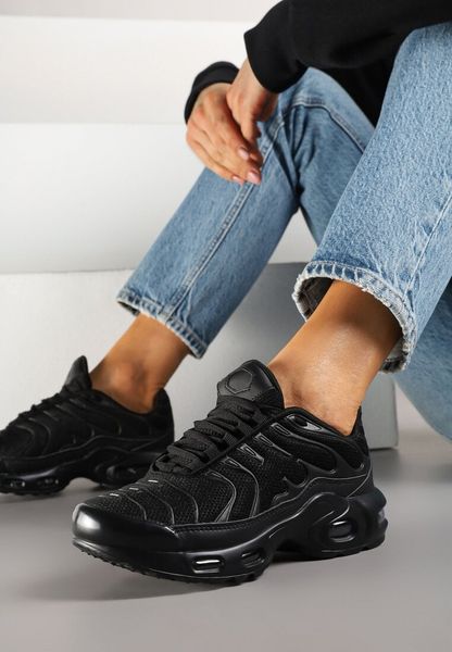 Czarne Buty Sportowe Sneakersy z Geometrycznym Tłoczeniem Vulinea