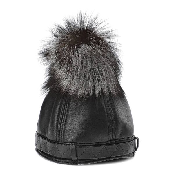 Czarna Czapka Z Pomponem Damska Luka-Pelli Z Naturalnym Futrem Z Lisa