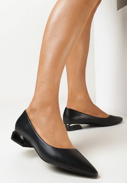 Czarne Czółenka na Niskim Obcasie z Metaliczną Wstawką i Noskiem w Szpic Tinariva
