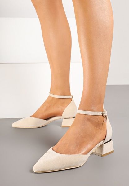 Beżowe Czółenka Vices na Geometrycznym Obcasie ze Skórzaną Wkładką Falori