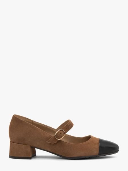 Brązowe czółenka z czarnym noskiem to esencja paryskiego szyku w miejskim wydaniu. Połączenie skóry licowej i welurowej nadaje im wyrafinowanego charakteru, a subtelne metaliczne elementy w kolorze miedzi dodają elegancji. Stabilny obcas typu klocek o wysokości 3,5 cm zapewnia komfort, nawet podczas intensywnego dnia. Zapięcie na sprzączkę gwarantuje dobre dopasowanie, a okrągły nosek podkreśla klasyczny, kobiecy […]