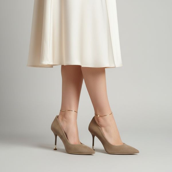 Czółenka damskie Chebello, ze skóry zamszowej wsuwane i na wysokiej szpilce, beżowe, 5021_-084-000-PSK-S423