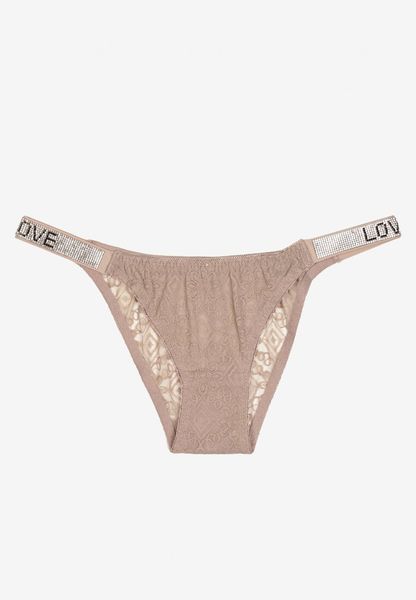 Ciemnobeżowe Bawełniane Majtki Figi z Koronki Ozdobione Cyrkoniami Elenivia