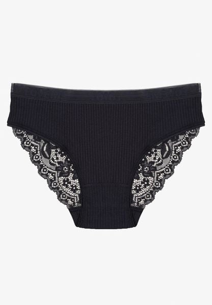 Granatowe Bawełniane Majtki Figi z Prążkowanej Tkaniny z Koronką Erqelia