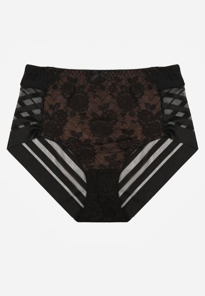Czarno-Beżowe Majtki Figi z Wysokim Stanem Zdobione Koronką i Siateczką Helieth