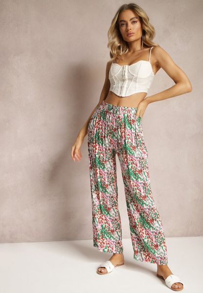Zielono-Różwe Spodnie z Wiskozy z Szerokimi Nogawkami i Gumką w Talii Cumiea