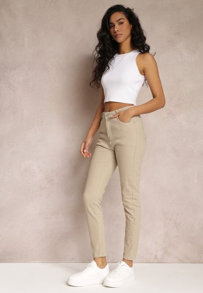 Beżowe Gładkie Spodnie o Kroju Slim Madysen