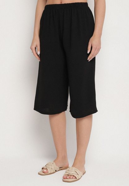 Czarne Szerokie Spodnie z Gumką w Pasie 3/4 z Kieszonkami Efronessa