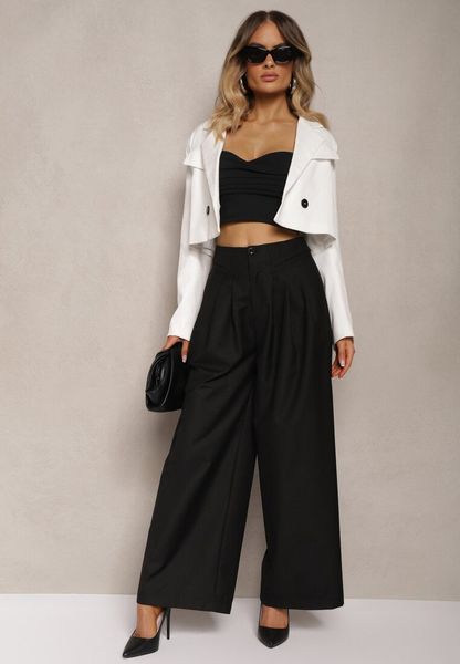 Czarne Eleganckie Spodnie High Waist o Szerokim Kroju z Dodatkiem Wiskozy Irelivia