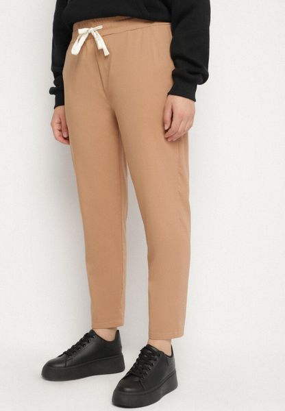 Beżowe Spodnie z Bawełny Ozdobione Sznurkiem z Napisem Olemira