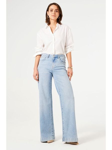– wysokość pasa: high waist- fason: Flared fit- krój nogawek: szeroki- szlufki na pasek: tak- zapięcie: guzik i suwak- kieszenie: 5 klasycznych- naszywki: ze skóry syntetycznej- przetarcia: tak
