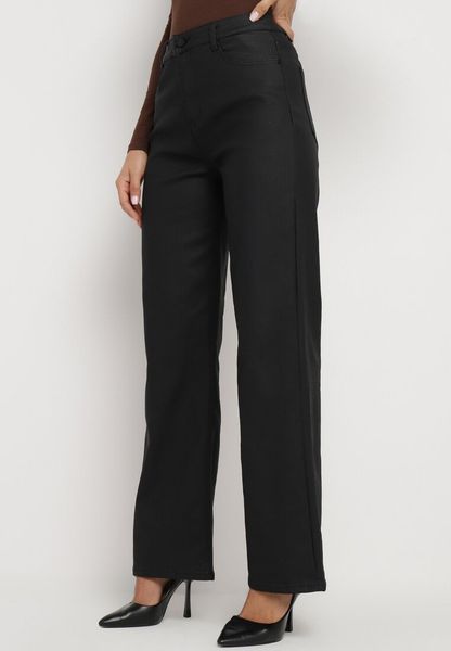 Czarne Szerokie Spodnie Woskowane z Wysokim Stanem Azilie