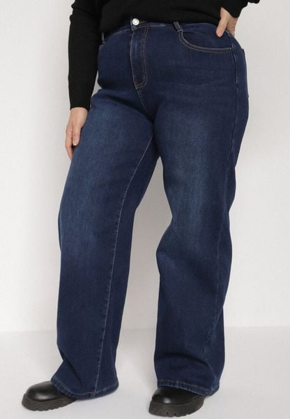 Granatowe Ocieplane Jeansy o Szerokim Kroju z Bawełną i Wysokim Stanem Mevidia