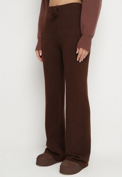 Brązowe Ocieplane Spodnie Dzianinowe o Szerokim Kroju Miorea