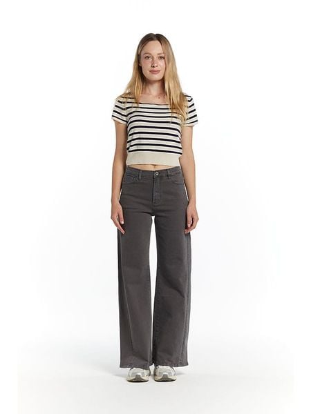 – wysokość pasa: high waist- fason: Flared Fit- krój nogawek: szeroki- krój: wąski- zapięcie: guzik i suwak- szlufki na pasek: tak- kieszenie: 5 klasycznych