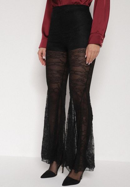 Czarne Koronkowe Spodnie Dzwony z Wysokim Stanem Solifera