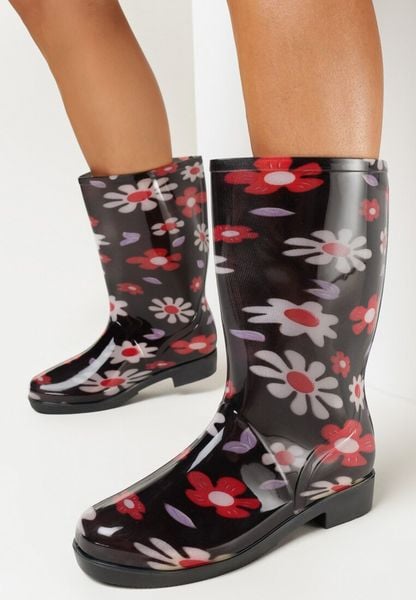 Czarno-Białe Kalosze w Kwiaty Cascarissa