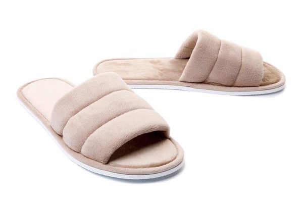 Kapcie damskie. Kolekcja Natural Style firmy Meteor. Przewiewna, tekstylna cholewka. Miękka wkładka. Elastyczne, nie zostawiające śladów podeszwy.