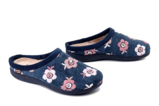 Kapcie damskie. Tekstylna cholewka. Specjalna budowa cholewki. Miękka wkładka. Elastyczna, antypoślizgowa podeszwa.