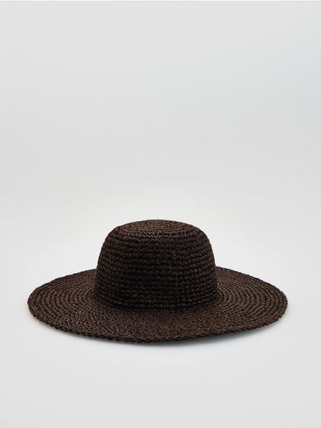 Pleciony kapelusz – ciemnobrązowy