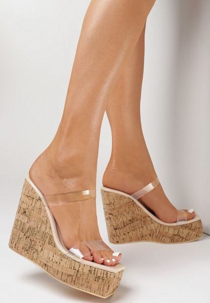 Klapki Athol na efektownym, korkowym koturnie z platformą. Otwarty, kwadratowy noskek. Z przodu dwa silikonowe paski podtrzymujące stopę. Wkładka wykonana z ekologicznej skóry. Wygodnie wsuwane. Klapki Athol świetnie współgrają z wzorzystą sukienką midi lub szerokimi spodniami materiałowymi.