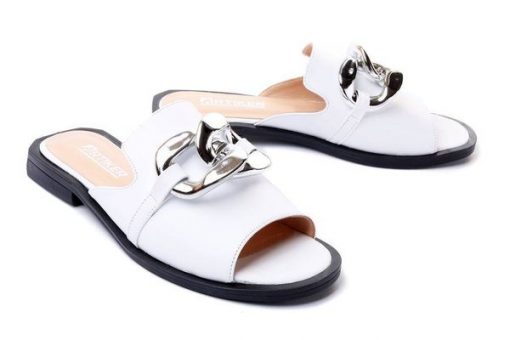 Klapki damskie. Naturalna skóra. Miękka, skórzana wkładka. Wygodny, płaski obcas. Elastyczna podeszwa. Tęgość G.