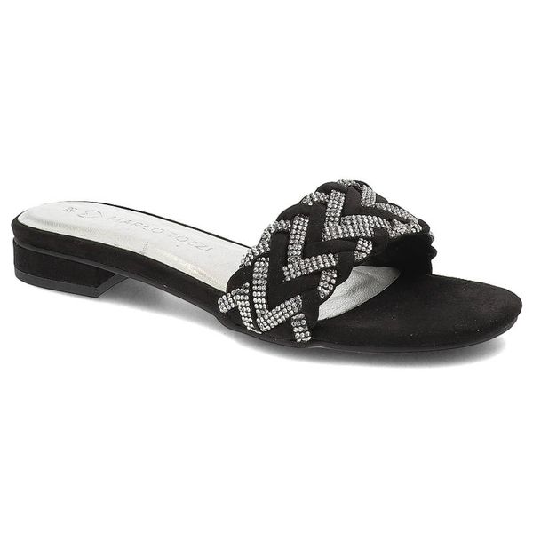 Czarne Klapki Marco Tozzi Eleganckie Obuwie Damskie