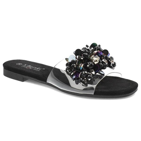 Czarne Klapki S.Barski Eleganckie Płaskie Buty