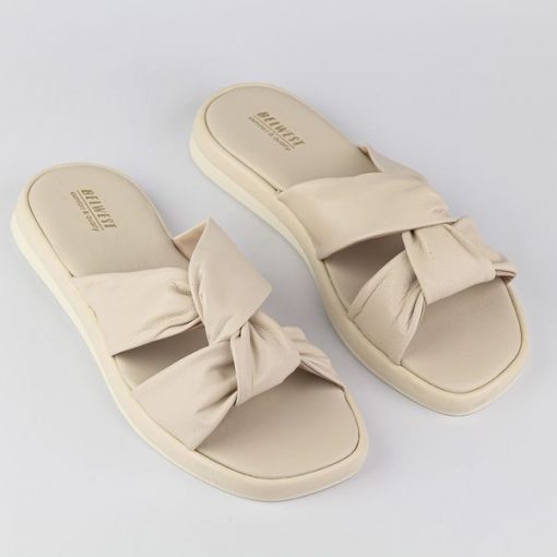 Beżowe skórzane klapki damskie:są pełnowartościowe w I gatunkusą starannie wykonane oraz odznaczają się wysoką trwałościąmaja stabilną podeszwęspód: 1.6 cm – 1.3 cm Kolor: Beżowy GWARANCJA na 12 miesięcy