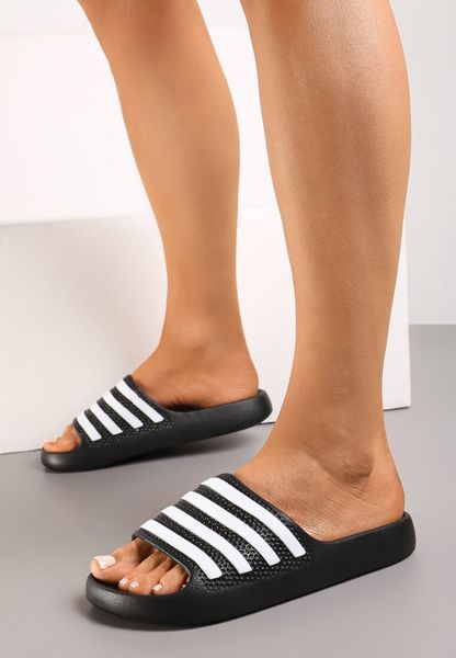 Czarne Klapki w Basenowym Stylu z Wzorem w Paseczki Antire