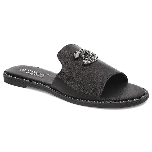 Czarne Klapki S.Barski Stylowe Obuwie Damskie